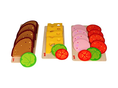 - Brot, Wurst, Käse und Salatbeilagen für Kaufmannsladen und Spielküche aus Holz von Goki, als Set zusammengestellt von Bambilino