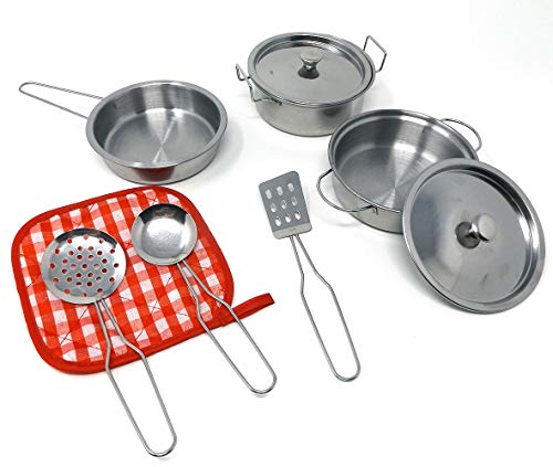Brigamo Metall Kochgeschirr Set Kinderküche Geschirr Metall, Spielküche Zubehör 9 teilig