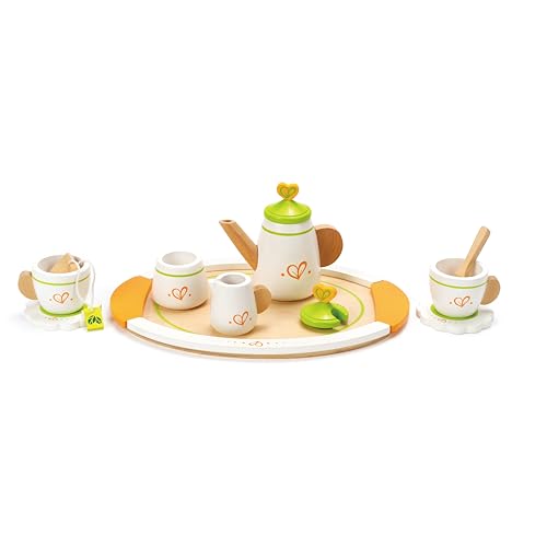 Hape Teeservice für zwei Teaparty-Spielset aus Holz von Hape | Teeservice-Fantasiespielzeug für Kinder aus Holz, Küchenzubehör-Kit, inklusive zwei Tassen, Untertassen, Löffel und Tablett