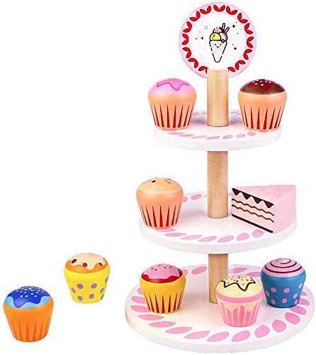 - 🍰 Exquisites Hölzernes Cupcake Ständer Set: Das mädchen spielzeug wird mit 9 aufwendigen holz kuchen und einem 3-lagigen Tortenständer geliefert. Der exquisite und süße Kuchen zubehör ist ein Lebensmittel spielzeug, das Kinder voller Erwartungen macht.