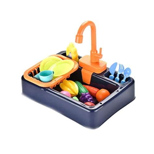 NIWWIN Pretend Play Kids Kitchen Sink Toys Set mit fließendem Wasser Lerngeschenke Jungen Mädchen Simulation Geschirrspüler Arbeitsarmatur & Abfluss Geschenke (Blau)