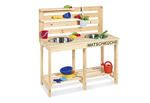 PINOLINO 221011 Matschküche Paul, unbehandelt, vollmassives Holz, Durchlass für einen Gartenschlauch in der Rückwand, für Kinder ab 3 Jahren