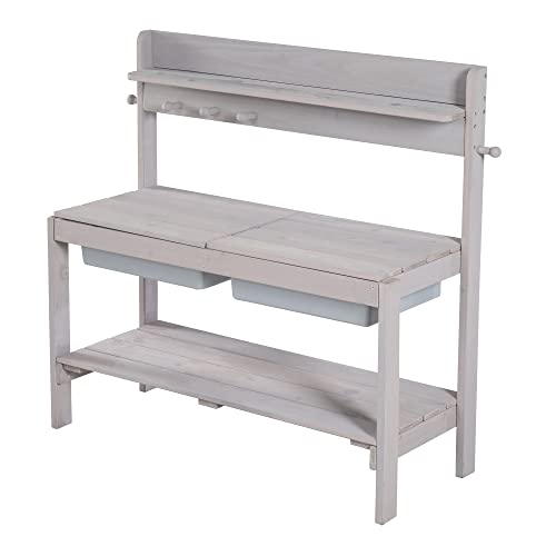 roba Kinder Outdoor Gartenküche ‚Fun‘ Outdoor +, Holz, Matschküche mit abnehmbarer Abdeckung, 2 Kunststoff-Wannen und Ablage, Arbeitstisch und Spielküche für draußen, wetterfest