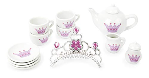 Small Foot 11273 Porzellan-Teeservice Krone im Prinzessin-Design, 14-TLG. Set mit Glitzerkrone, Rollenspielzeug Spielzeug, Mehrfarbig, Stück (1er Pack)