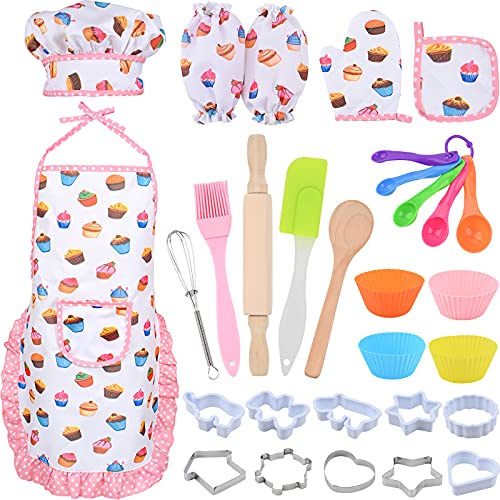 • Exklusives Set:Dies ist ein einfaches Kochset, das speziell für Kinder entwickelt wurde, um das Kochen zu lernen. Einschließen 1 Schürze, 1 Kochmütze, 1 Ofenhandschuh, 1 Ärmel, 1 Matte, 1 Nudelholz, 1 Rührer, 1 Bürste, 1 Holzlöffel, 1 Plastiklöffel einschließen 5 Löffel, 4 Muffinschalen, 4 Edelstahlformen, 6 Plastik Formen.
